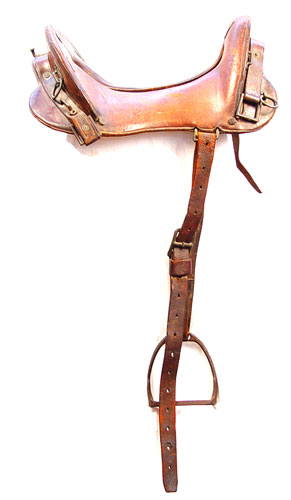 McCLELLAN COMPLETE CAVALRY SADDLE: Spanish American War era. Complete with stirrups. Also included Tampa Spanish American war cavalry stereoview. Marked 11 1/2'' seat. Saddle 18'' long, 12'' wide at widest point.