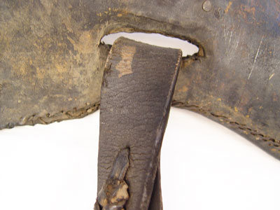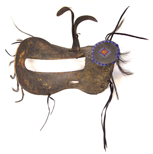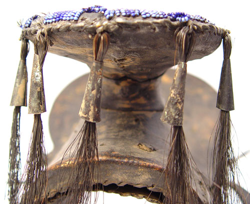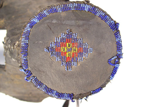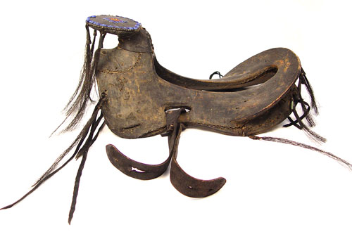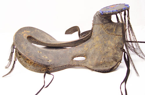 McCLELLAN SADDLE APACHE INDIAN DECORATION: Southwest Indian beaded decoration and silver / horse hair attachments. 18 1/2'' long X 12'' wide at widest point. Possible military capture or trade. Early example with Mexican horn.
