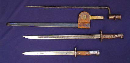 LOT OF 3 INDIAN WARS ERA BAYONETS: To include 1) 1907 Remington, no scabbard 2) Indian wars era US stamped with scabbard and US hanger 3) Plain bayonet, no scabbard, no markings.
