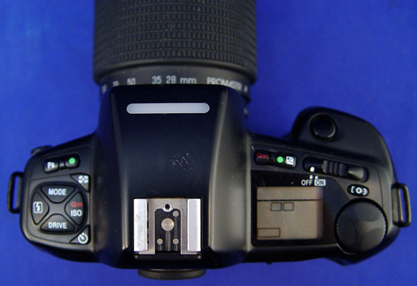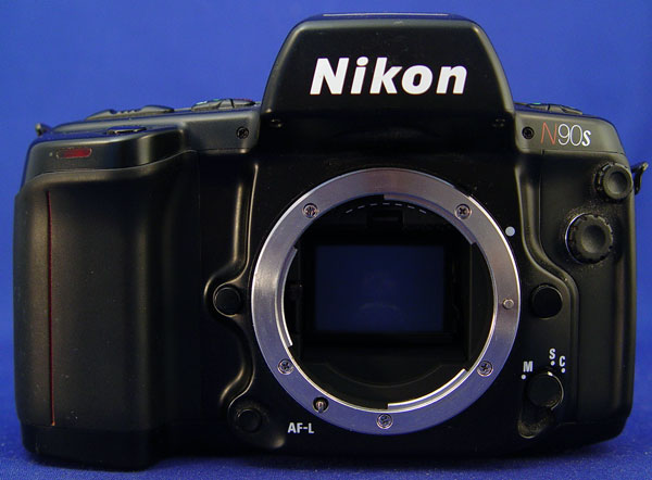 NIKON N90S SLR CAMERA WITH 72mm PROMASTER LENS: Turns on, auto focuses appear to work. Shows signs of use, but otherwise excellent. Model AE-L, serial number 2270856. Comes with manuals.
