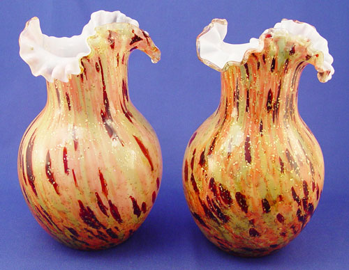 PAIR MURANO AVENTURINE GLASS VASES: 10 3/4''h, ruffle top.