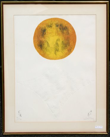 LEBADANG, (Vietnamese/French): Abstract Scene with Horses, Lithograph with embossing, sight size 24 3/4'' x 18 3/4'', pencil signed, # 99/120, framed 31'' x 24 1/2''. Very mild matt burn at all margins.