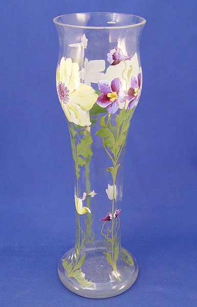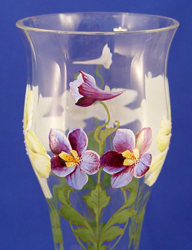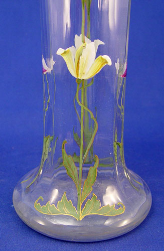 ART NOUVEAU ENAMEL GLASS VASE ATTRIB. MONT JOYE: 14'' high, unsigned.