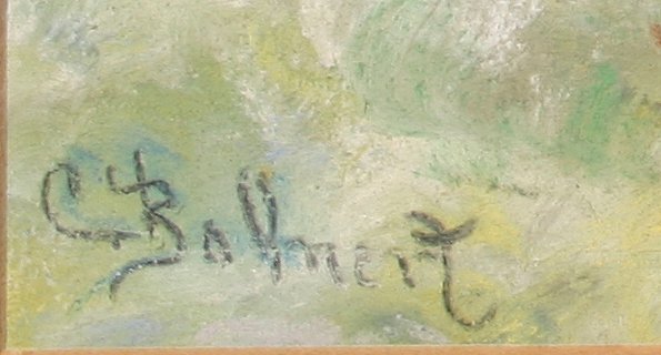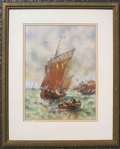 ILLEGIBLY SIGNED PASTEL HARBOR SCENE: Sight size 14'' x 10 1/4'', illegible signed C Vaomert?, embossed gilt frame with wear, 21 1/2'' x 17 1/2''.