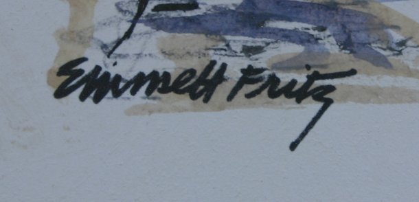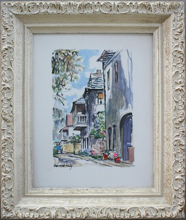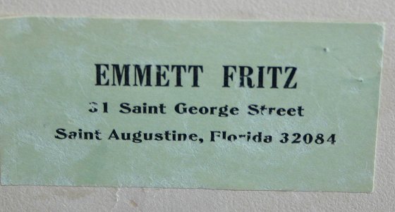 FRITZ, Emmett, (American, 1917-1995): St. Augustine Street Scene, W/C, image size 10'' x 7'', signed, encased in painted gilt frame, 18 1/2'' x 15 1/2'', original Emmett Fritz label verso. Est. $300/500**