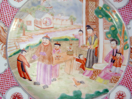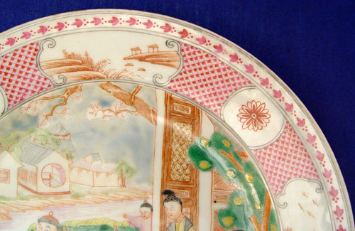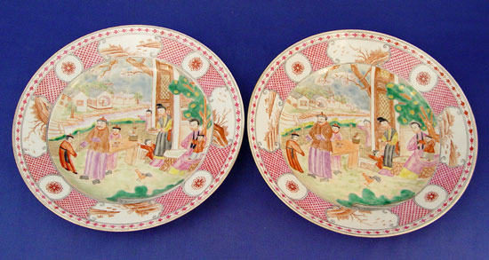 PAIR CHINESE EXPORT PORCELAIN PLATES: Hand painted polychrome decoration, 9 1/4'' dia. Est. $400/600**