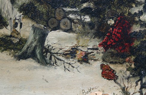 ''L'HABITANT'', 1934 OIL/CB SIGNED BOLDUC: 9'' x 12'', signed, unframed. Slight chipping around edges and near signature.