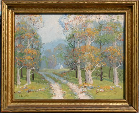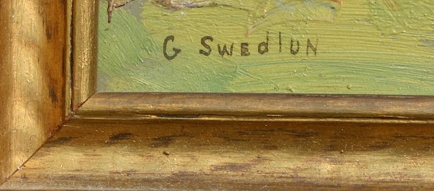 SWEDLUN, Glen, (American, 20th C.): Forest Landscape, Oil/M, 11'' x 14'', signed, gilded frame, 13 1/2'' x 16 1/2''.