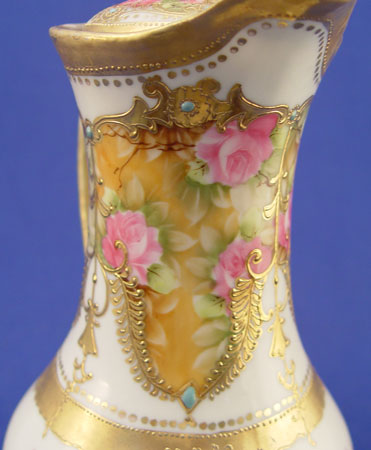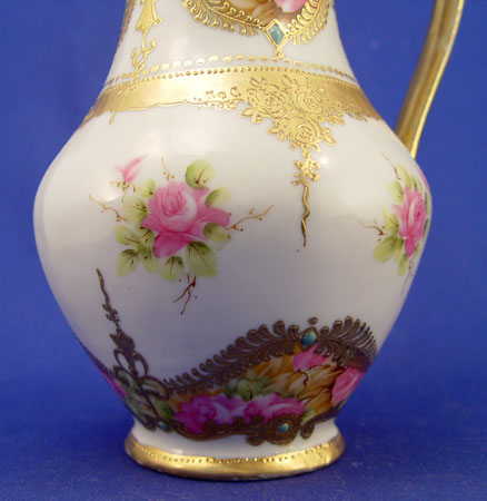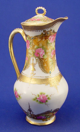 NIPPON ROSE DECORATED CHOCOLATE POT: 11''h., ''hand painted'' backstamp. Please note some wear to gold.