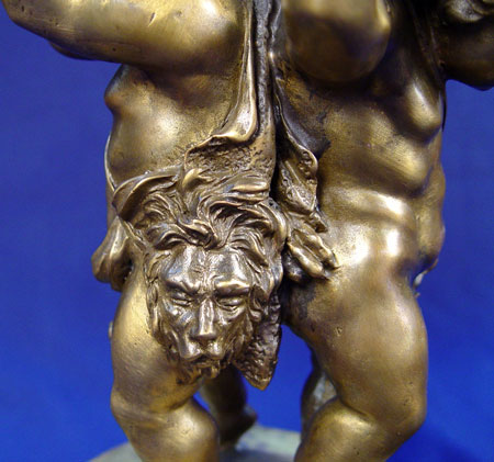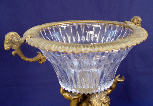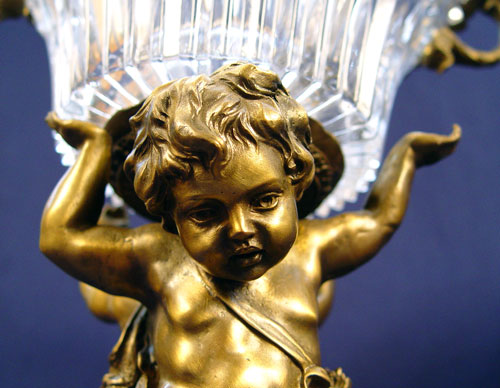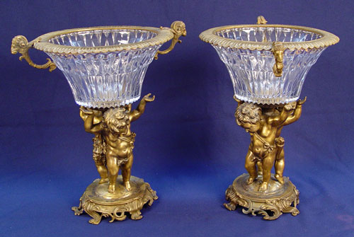 PAIR CRYSTAL & BRONZE CHERUB FIGURAL COMPOTES: 15 1/2'' high X 14 1/4 dia overall