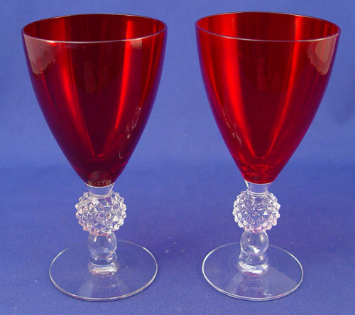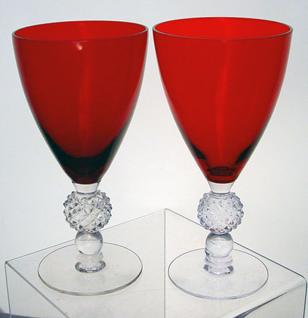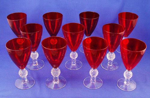 11 MORGANTOWN ''GOLF BALL'' RUBY SPANISH RED WATER GOBLETS: 6 3/4'' high X 3 3/8'' lip dia.