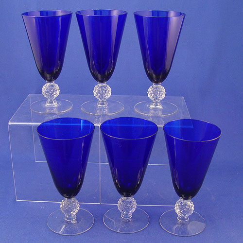 6 COBALT GOLF BALL STEM WATER GOBLETS: Possibly Morgantown, 6 5/8'' high