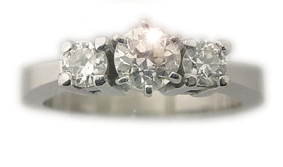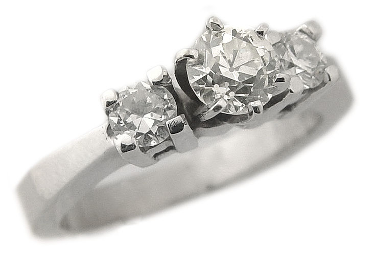 CLASSIC 3 STONE DIAMOND RING: Center stone is a .60 Ct. Old European diamond, rated VS1 in clarity and K in color flanked by two round full cut diamonds, weight: .40 CTW. Rated VS-SI in clarity and G-H in color. The diamonds are prong set in 14K white gold. Weight: 6.6 grams. Diamonds 1.CTW. Size 9 Est. $2000/2800**