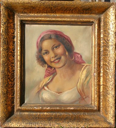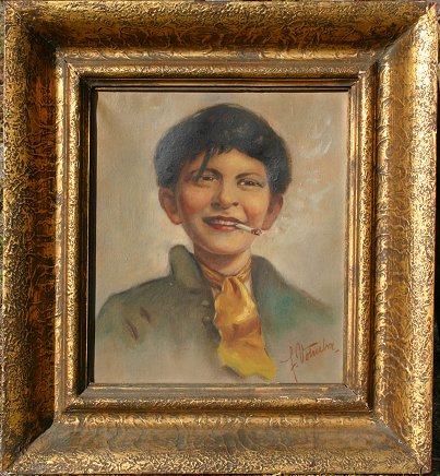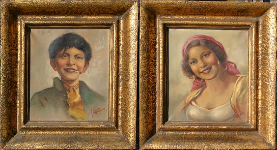 VOTRUBA, Frantisek, (Austrian, 1895-): Gypsy Woman and Child Smoking, Oil/C, 2pc lot, each 16'' x 14'', signed, encased in gilded frames, 23 1/2'' x 21''. Need cleaning.