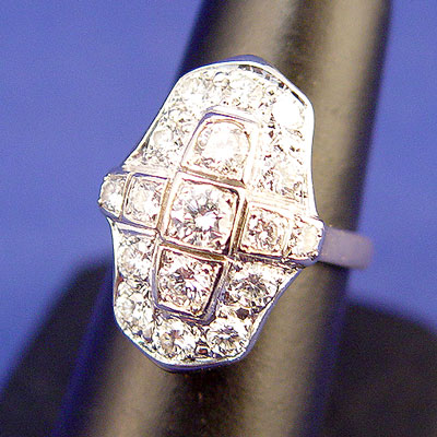 EDWARDIAN STYLE DIAMOND MELEE RING: 14K two tone gold mount with 1.75 CTW diamonds. Round brilliant cut diamonds rated VS-SI in clarity and H in color. The diamonds are prong set. Weight: 8.0 grams. Size 6.5 Est. $2000/3000**