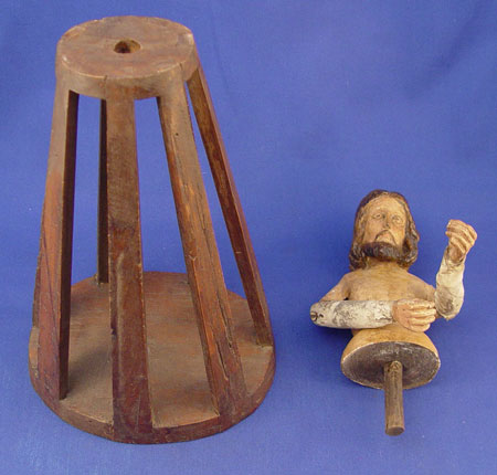 18th C EARLY PORTUGUESE RELIGIOUS ICON ''ROCA'': Imagens de Roca E De Vestir. 17 1/2'' tall. Removable upper torso. Jointed arms wrapped in original fabric. It was the custom to dress these figures, that represent Jesus, in different cloths during celebrations of faith. Est. $800/1000**