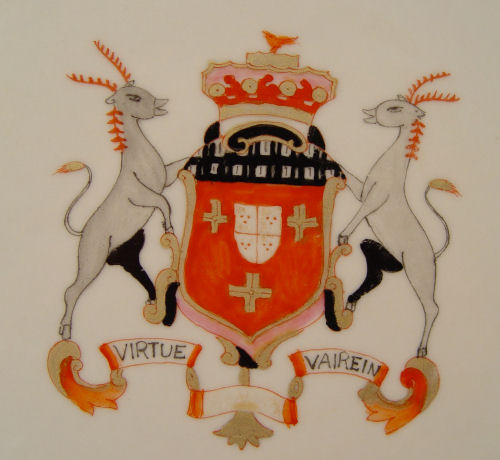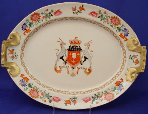 PAIR OF EARLY 20TH CENTURY JAPANESE EXPORT PLATTERS: Oval in shaped with molded handles. Center is a banner ''Virtue Vairien'', 12 1/2'' long.