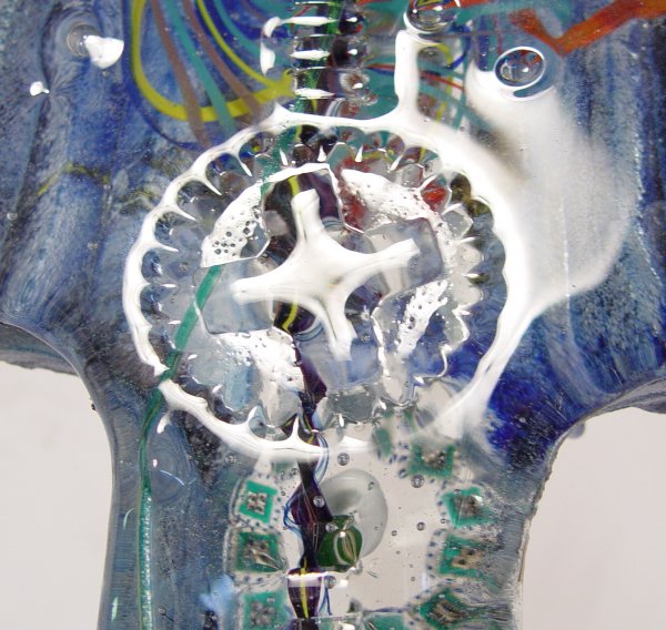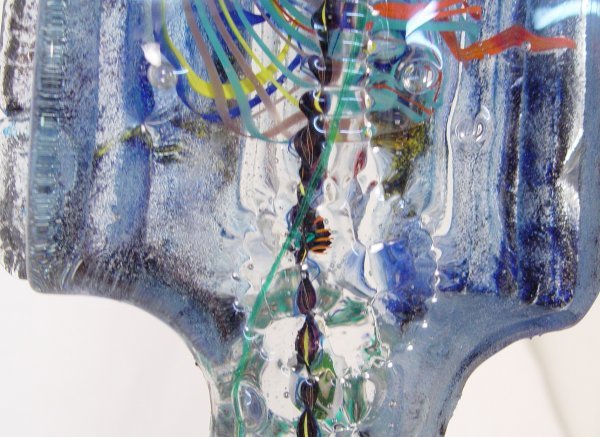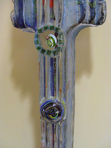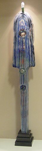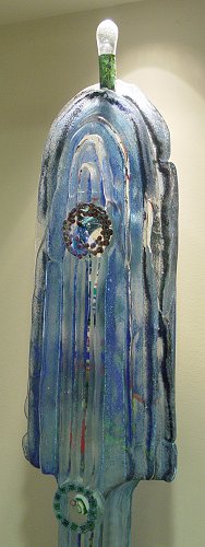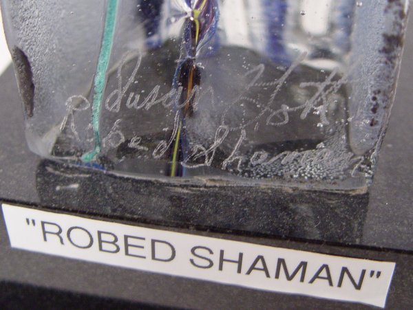GOTT, Susan, (American, 20th C): ''Robed Shaman'', Art Glass Sculpture, approx. 49'' plus three tiered plinth, overall approx. 53 1/2''h., signed and titled at back base of glass. Susan Gott is a Tampa Florida artist, her projects are included in the collections of the City of St. Petersburg, Hillsborough County, Hartline University Transit Center, and the University of Central Florida.
