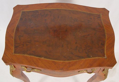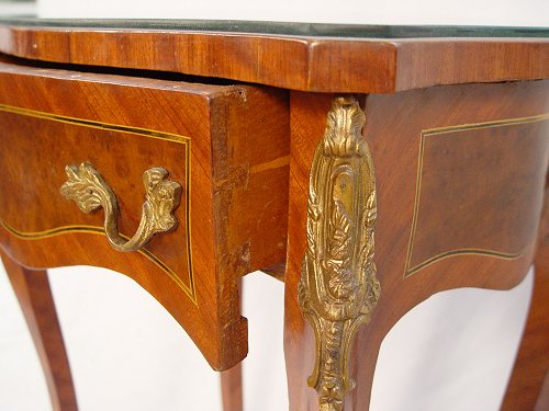 PAIR FRENCH ORMOLU TABLES: Louis XV style stands, single drawer, string inlay. 30''h. x16 1/2'' x 22 3/4''. 20th C.
