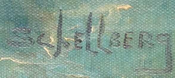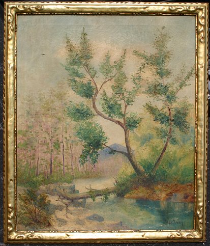 IMPRESSIONIST SPRING RIVER LANDSCAPE, CA EARLY 20TH C: Oil/Canvas, 36'' x 30'', signed Schellberg, encased in period gilded and carved frame, 40'' x 34''. Needs cleaning, puncture in upper left margin.