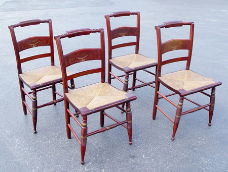 SET OF 4 SIGNED HITCHCOCK SIDE CHAIRS: Stencil design in gold. Signed ''Authentic Hitchcock Nichols & Stone''