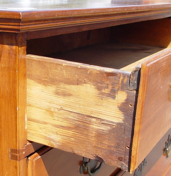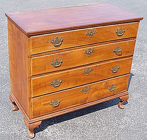 19th C AMERICAN COUNTRY 4 DRAWER CHEST: Pine chest of 4 drawers, on later feet. 35'' high x 38 1/4'' wide x 17 1/2'' deep