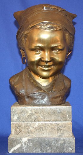 DE MARTINO, Giovanni, (Italy, 1870-1935): Bronze Bust of a Young Peasant Girl, 11''h., signed, affixed to a marble plinth, 15 1/2''h. overall.