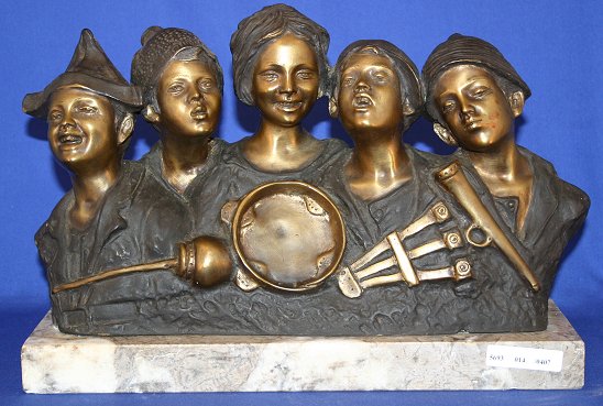 DE MARTINO, Giovanni, (Italy, 1870-1935): Grouping of Musicians, Bronze, 7 1/2''h. x 14''w., signed, on marble plinth, 8''h. overall.