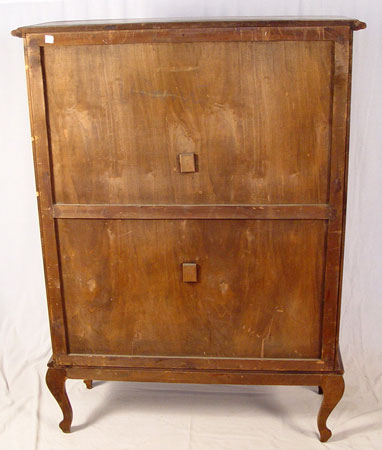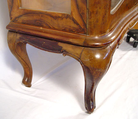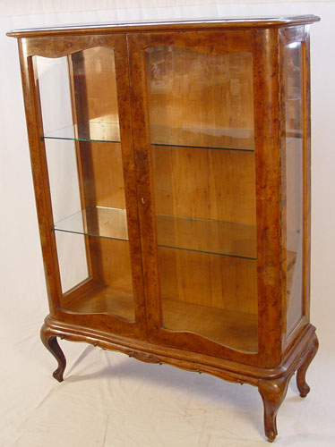 QUEEN ANNE STYLE CURIO DISPLAY CABINET: Raised on cabriole legs. Glass shelf interior. 60 3/4'' high x 43'' wide x 16'' deep.