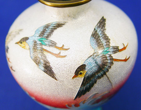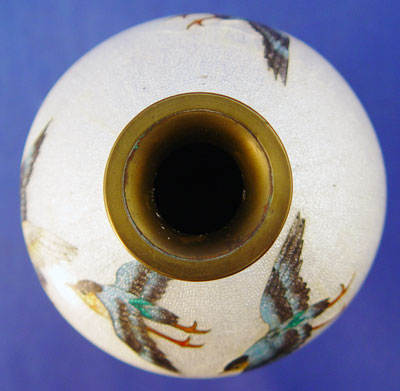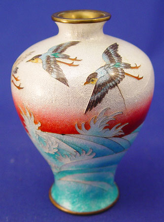 JAPANESE GINBARI CLOISONNE VASE: Birds over water. 4 1/2'' high.