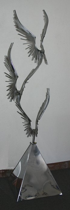 JERE, Curtis, (American, 20th C.): Eagles, chrome plated rod construction, approx. 72''h. x 16'' x 16'' on 18'' pyramid base.