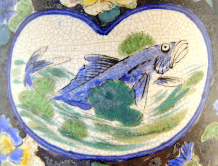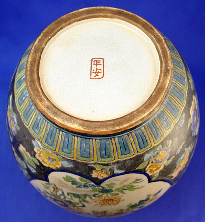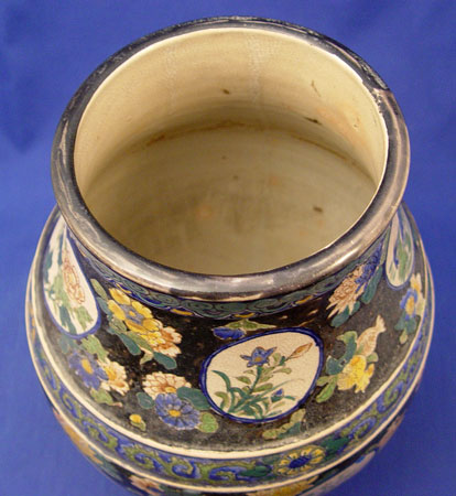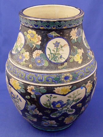 LARGE JAPANESE SATSUMA VASE: Polychrome colors of the sea, 12 1/4'' tall, 6'' dia. at the rim. Signed on underside of the base.