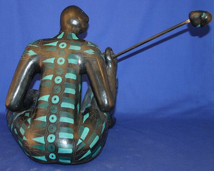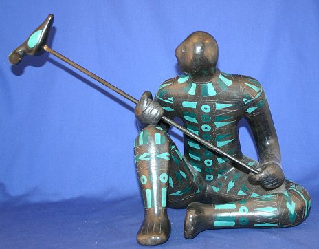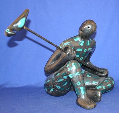 FELGUEREZ, Manuel attrib, (Mexico, 1924-): Hunter and bird, 3 pc Painted Sculpture, 12'' h. x 10'' w. x 12'' d., later added stick, bird does detach, no visible signature.