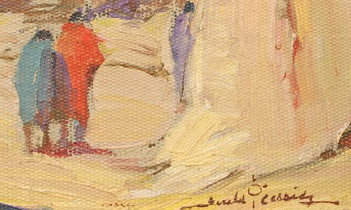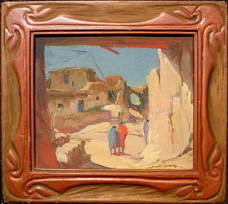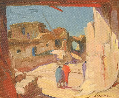 CASSIDY, Gerald Ira Diamond, (American, 1879-1934): ''Hopi Indian Pueblo, NM'', Oil/Artist Board, 10'' x 12'', signed, encased in period painted and carved frame with minor wear, 14 1/4'' x 16 1/4''. Original condition with small fleck in upper margin.