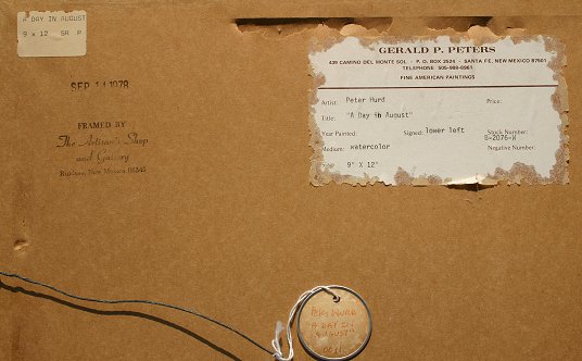 HURD, Peter, (American, 1904-1984): ''A Day in August'', W/C, 9'' x 12'', signed, encased in The Artisan's Shop frame, 10 1/2'' x 17 1/2'', original Gerald P. Peters Gallery label affixed verso.