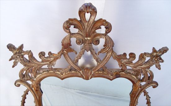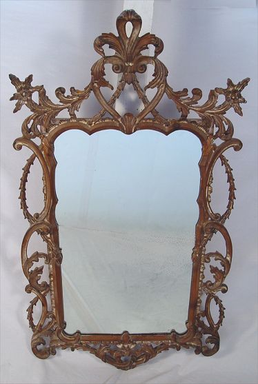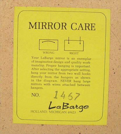 GEORGIAN STYLE CARVED MIRROR BY LABARGE: Carved wood with just a touch of paint. 50'' x 27 1/2'' overall.