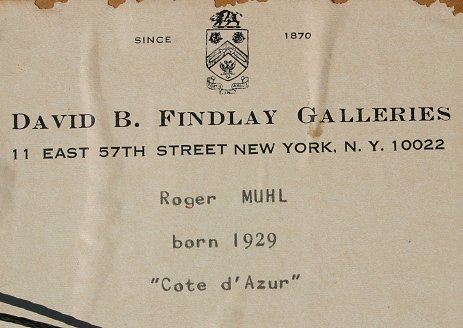 MUHL, Roger, (French, 1929-): ''Cote D'Azur'', Lithograph, sight size 21'' x 29'', pencil signed and numbered 4/120, fine gilt framing, 29 1/2'' x 37'', David B. Findlay Gallery label affixed verso.