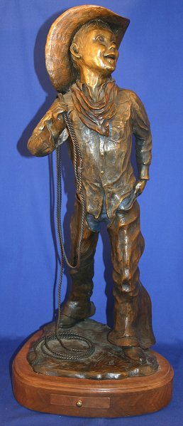 PERKINS, Shalah, (American, 20th C): ''I'm Gonna be a Cowboy'', Cold Painted Bronze, 25''h. x 11'', signed, dated 1985, on a custom revolving wood plinth.