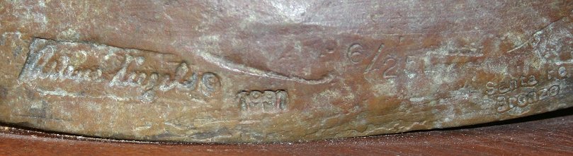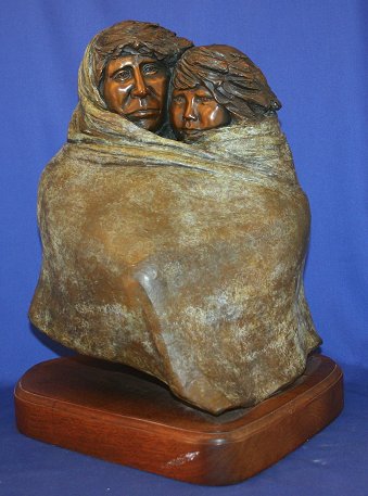 SIEGEL, Arlene, (American, 20th C): ''Generations'', depicting a huddled Indian Mother and Child, Patinated Bronze, 14''h. x 13''w., signed, dated 1991, #6/25, Santa Fe Bronze foundry mark, affixed to a custom carved wood plinth.