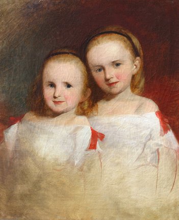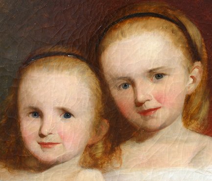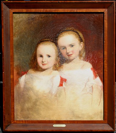 TREGO, Jonathan, (American, 1817-1888): ''Martha & Rachel Emma Trego'', Oil/Canvas, 26'' x 22'', no visible signature, encased in a period mahogany frame, 31'' x 26 1/2''. Re-lined, cracklure throughout, scattered in-paint.