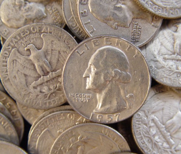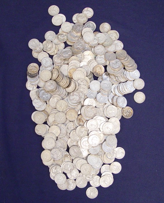 LOT OF APPROX. 448 1950'S SILVER WASHINGTON QUARTERS: To include 26-1950, 58-1951, 54-1952, 31-1953, 44-1954, 8-1955, 43-1956, 78-1957, 56-1958, 50-1959. Approx. 90.3 troy oz. Various mints and condition. All amounts are approximate.