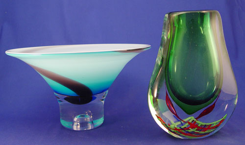 MODERN ITALIAN ART GLASS: 2 pieces lot to include vase 9'' high and flared bowl 6 1/2'' high x 11 1/2'' dia.