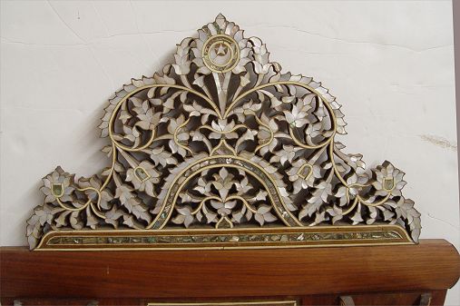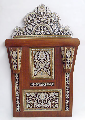 TURKISH MOTHER OF PEARL WALL PANEL: With wall pocket vases. 45'' high x 28'' wide