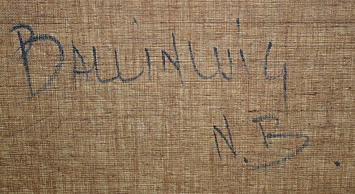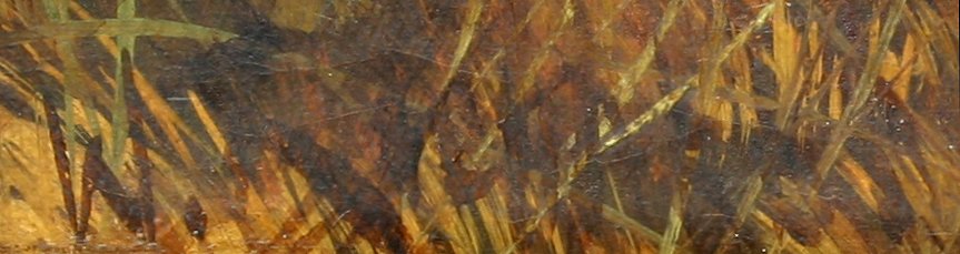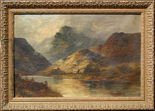 RICHARDS, William, (British, 19/20th C.): ''Ballinwig, N.B.'', Oil/Canvas, 16'' x 24'', signed lower left, titled verso on canvas, framed, 20'' x 28''. Cracklure throughout, repair to tear in right margin, needs cleaning, small puncture in lower mid margin, several minor repaired punctures.
