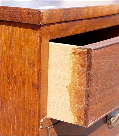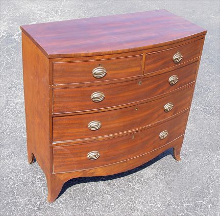 2 OVER 3 BOWFRONT MAHOGANY CHEST OF DRAWERS: Hepplewhite bowfront style. 2 drawers over 3 drawers. Oval pulls. Measures 40 3/4'' high x 41 1/2'' wide x 17 1/2'' deep