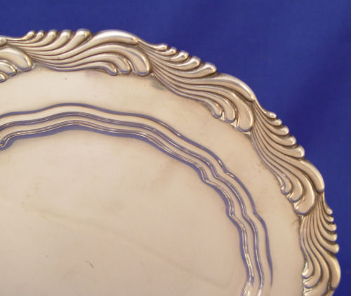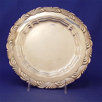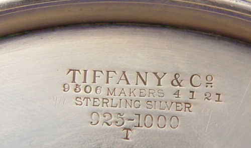 TIFFANY & CO STERLING DECO SALVER: Raised border, tiered tray. ''Tiffany & Co. 9506 Makers 4121 Sterling Silver 925-1000'', 9 1/2'' dia. Approx. 18.9 troy oz.