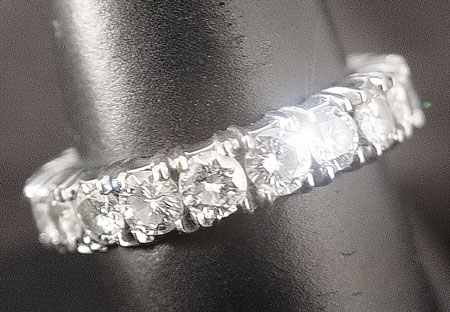 PLATINUM 3.00 CTW DIAMOND ETERNITY BAND: Platinum ''Eternity'' style anniversary band. Twenty round brilliant cut diamonds. Approx. 3.00 CTW. Rated VS1 in clarity and G-H in color. The diamonds are prong set. Weight: 6.7 grams. Size 6.5