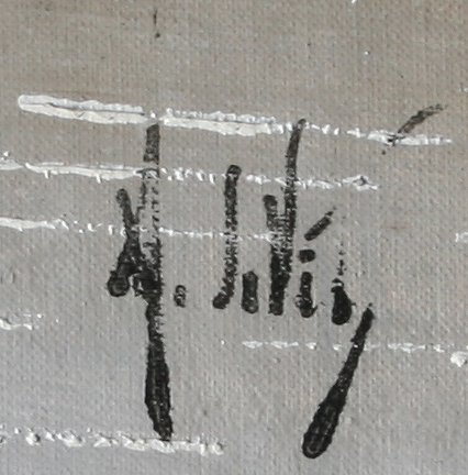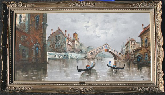 DEVITY, Antonio, (Italian, 1910-): ''Venice'', OIL/C, 24'' x 48'', signed, stencil verso, pierce carved frame, 30'' x 54''.