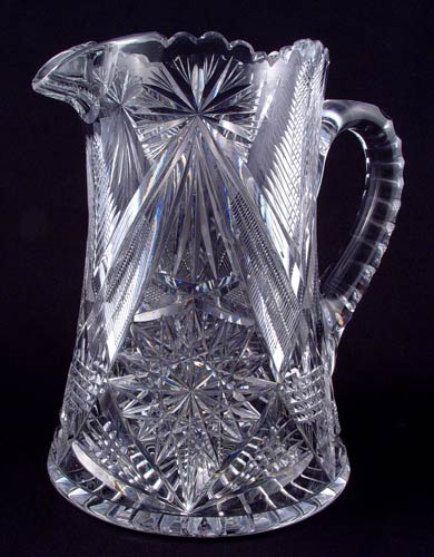 SIGNED LIBBEY AMERICAN BRILLIANT PERIOD CUT GLASS PITCHER: Measures 8 5/8'' high. No chips.