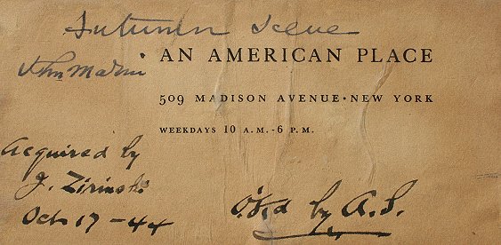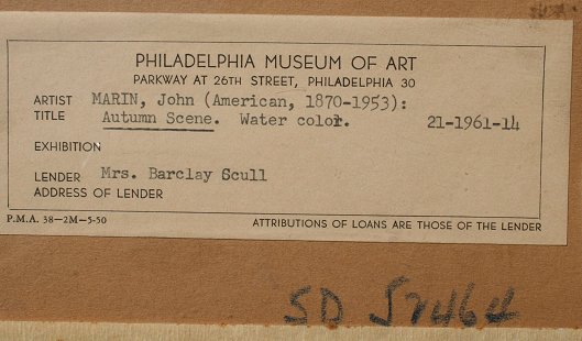 MARIN, John, (1872-1953): Autumn Scene, W/C, 15'' x 12'', signed and dated '18, gilt leaf frame, 23 1/2'' x 20'', Philadelphia Museum of Art label on verso, as well as ''An American Place'' gallery label. From the estate of Don Page.